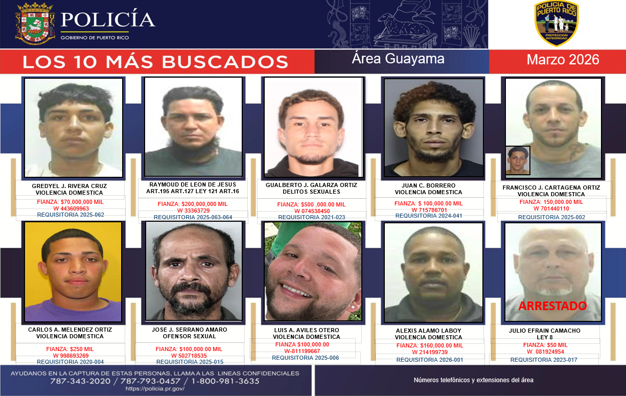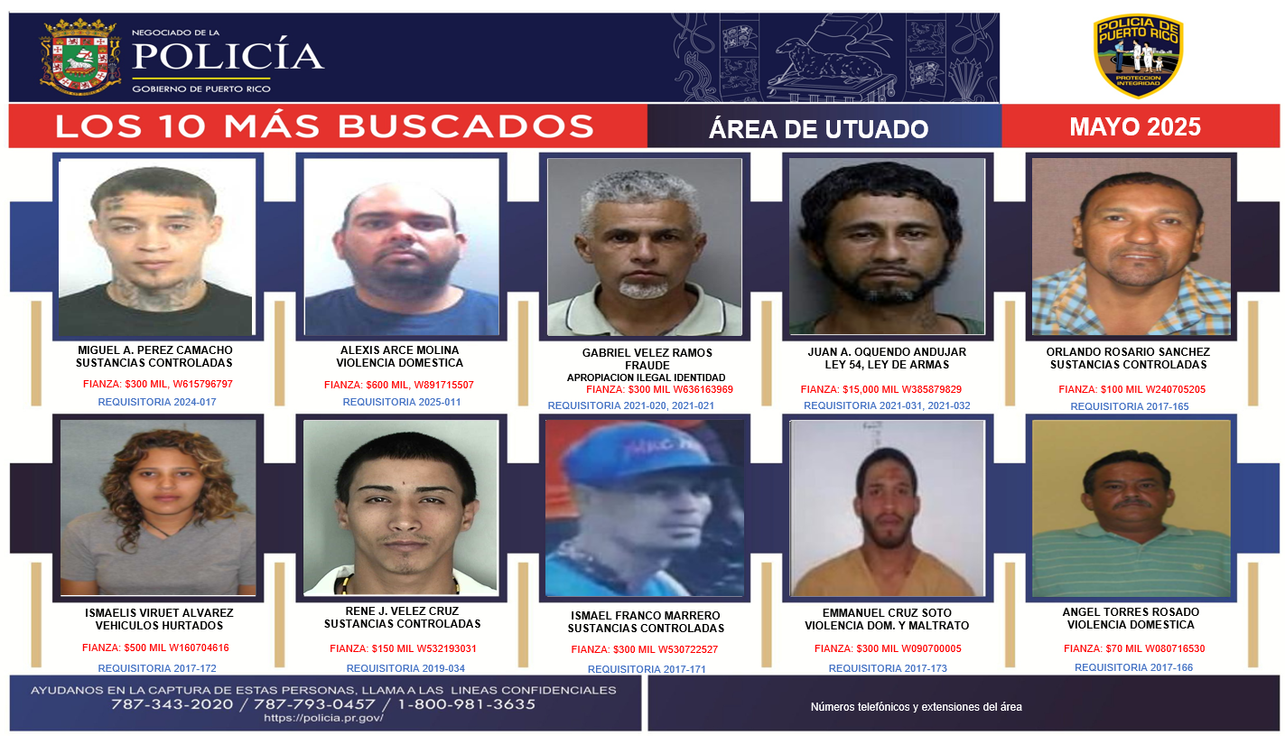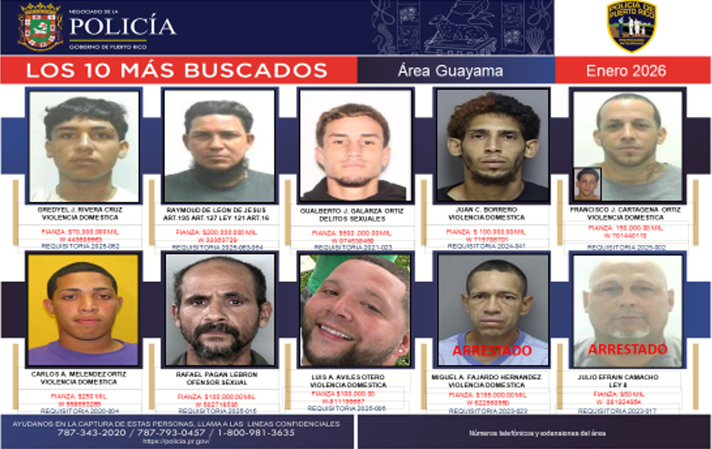 La misión de la División de Arrestos y Extradiciones es perseguir y aprehender a los Delincuentes Más Buscados. Investigar aquellos casos que revistan extraordinario interés y que encomiende el Superintendente Auxiliar. Cumplimentar las Órdenes de Arresto expedidas contra sujetos que cometan Delitos en los municipios fuera del Área Metropolitana y se muevan a esta o al extranjero. Cumplimentar las Órdenes de Arresto expedidas contra acusados (as) Declarados Prófugos por los Tribunales del Área Metropolitana (San Juan, Carolina y Bayamón) por Delitos Graves (Resoluciones de Prófugos). Mantener comunicación y colaboración con Agencias Federales y Estatales, para obtener información rápida de los evadidos de las Instituciones Locales y fuera de Puerto Rico. Confeccionar y tramitar Requisitorias Generales y Especiales de Prófugos de la Justicia. Extraditar y mantener un Registro de los Arrestados y Extradiciones efectuados en los Estados Unidos hacia Puerto Rico y viceversa, de todo (a) Delincuente Requerido (a) por las autoridades correspondientes. Mantener estrecha comunicación con la INTERPOL y la Sección de Extradiciones del Departamento de Justicia, en las labores de Arresto y Extradición de delincuentes. Entrar al Sistema N.C.I.C., todas las Órdenes de Arresto por Delitos Graves, expedidas por los Tribunales de Puerto Rico y darlas de baja una vez diligenciadas.